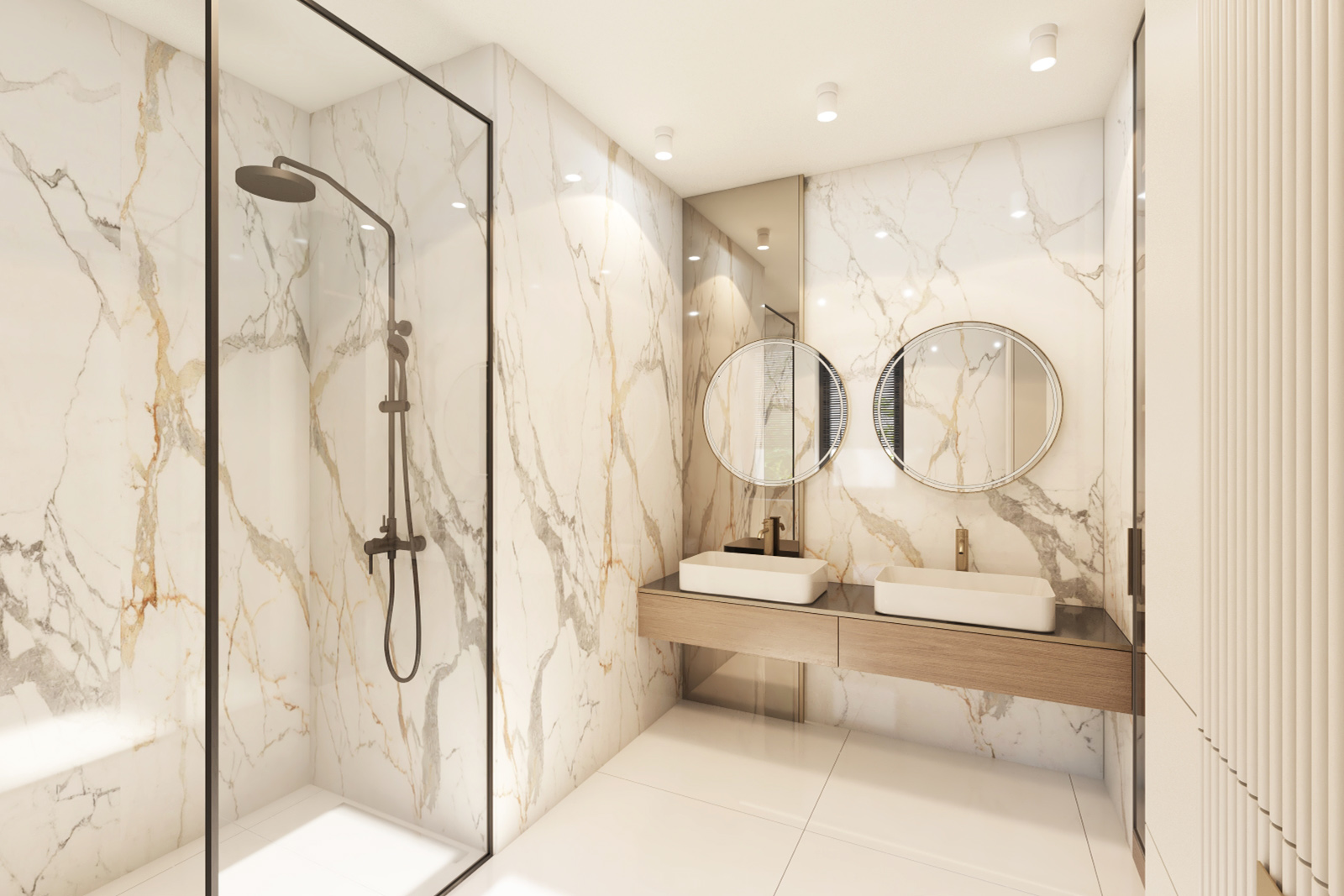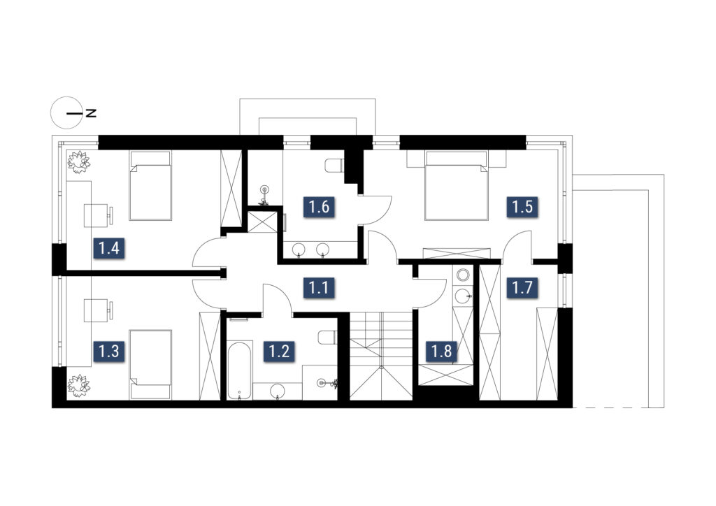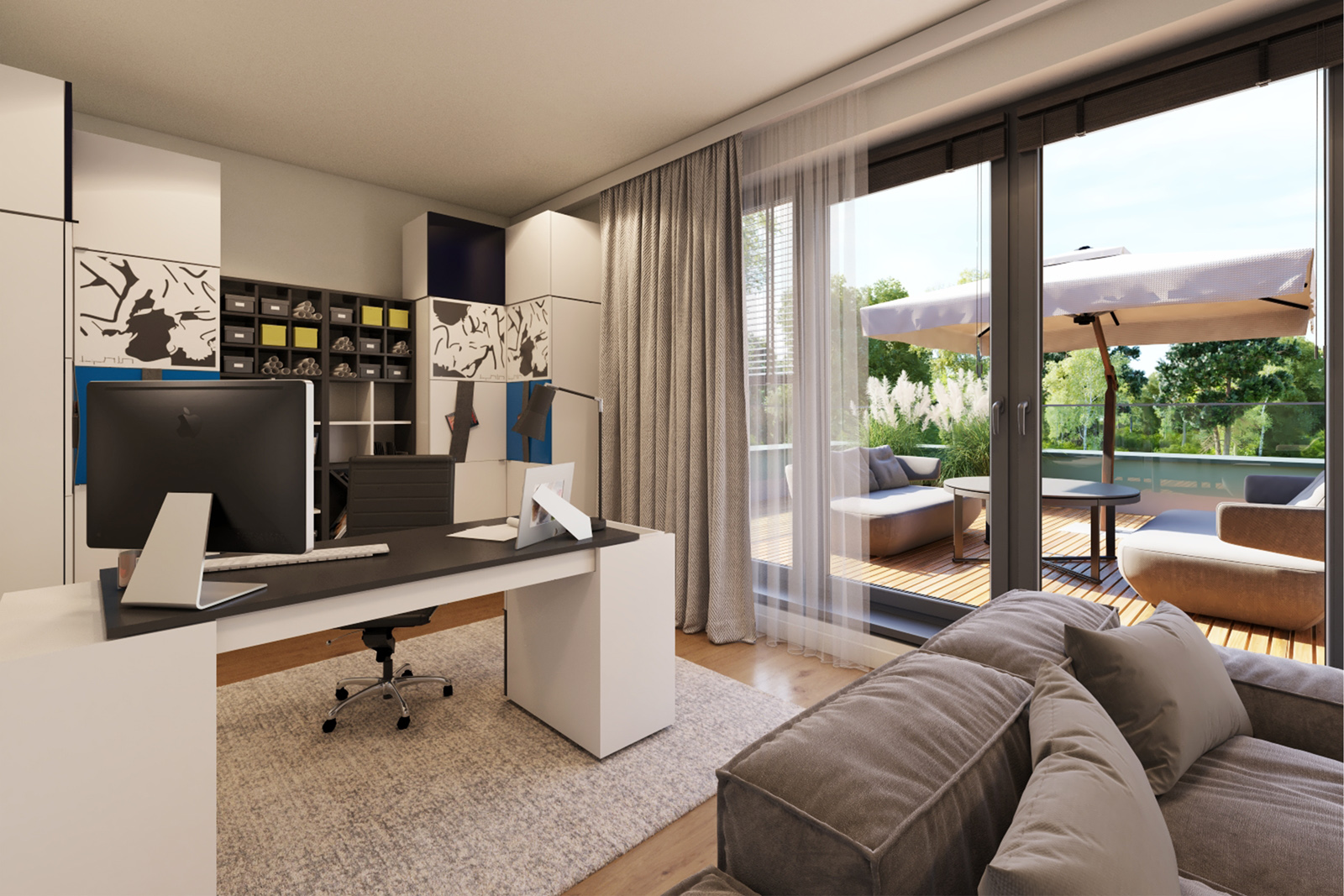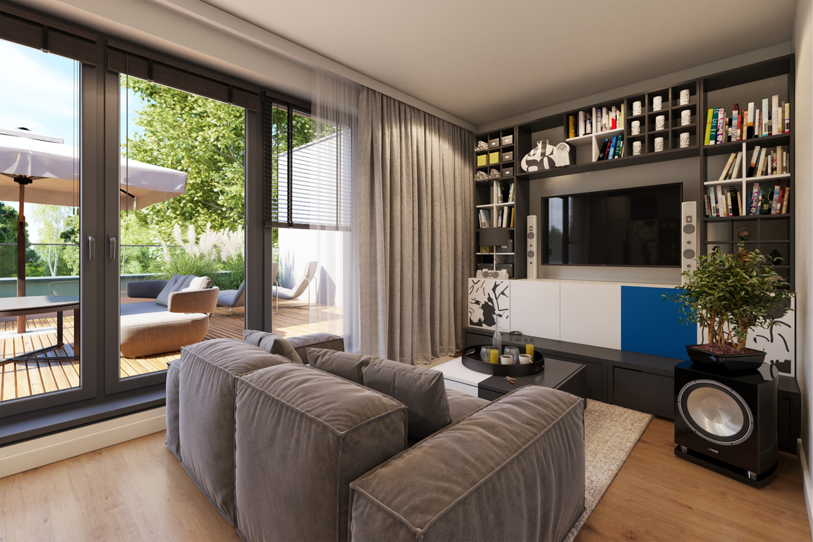 Jeśli lubisz spokojne poranki na świeżym powietrzu lub popołudnia spędzane z rodziną w intymnej atmosferze, w Campi Belli Due znajdziesz idealne warunki. Z salonu wyjdziesz bezpośrednio do prywatnego ogrodu przez duże okno tarasowe w systemie HS, które pięknie doświetla wnętrze. Na najwyższej kondygnacji czekają dwa tarasy z ekspozycją na różne strony świata – doskonałe miejsce na popołudniowe odprężenie, jogę o świcie albo letnie kolacje pod niebem Ursynowa. To właśnie te przestrzenie tworzą atmosferę luksusowego domu, do którego chce się wracać.