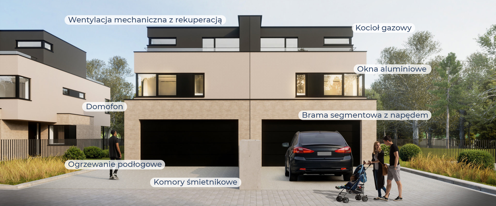 W Campi Belli Due czekają na Ciebie cztery domy w zabudowie bliźniaczej o powierzchni 222,08 m², stworzone z myślą o maksymalnym komforcie. Znakomity wybór dla osób, które cenią dużą, mądrze zaplanowaną przestrzeń. Wysokie, 3-metrowe pomieszczenia, przestronna strefa dzienna i dwa pełne piętra dają swobodę aranżacji, w której łatwo poczuć odrobinę włoskiej lekkości i elegancji. Na parterze znajdziesz przytulne miejsce do wspólnego celebrowania codzienności, a piętra pozwolą stworzyć prywatną strefę dokładnie tak, jak lubisz. Do dyspozycji masz także duży, dwustanowiskowy garaż.