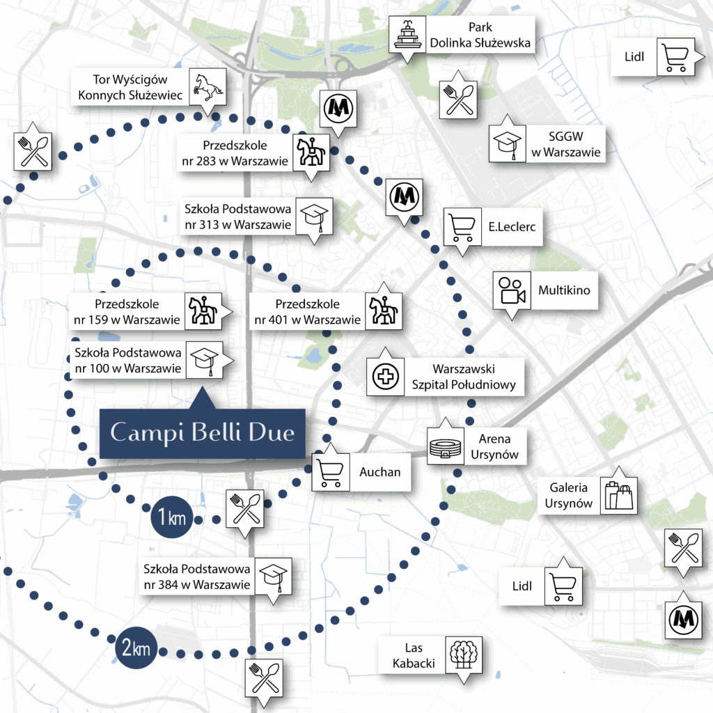 Campi Belli Due to kontynuacja cenionej warszawskiej inwestycji, która w niezwykły sposób łączy włoski klimat, elegancję i nowoczesną architekturę. Bryła budynków pozostała wierna charakterowi pierwszego etapu, ale pojawia się tu jeszcze więcej dopracowanych detali oraz ponadczasowych materiałów. Wkomponowana w willową zabudowę Ursynowa forma tworzy spójną, prestiżową całość, idealnie wpisującą się w zielone otoczenie tej części miasta. To miejsce, w którym estetyka i funkcjonalność zawsze idą w parze.